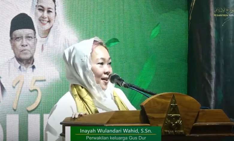 Ditemani mantan staff rumah tangga kepresidenan pada era Gus Dur, Priyo Sambodho, putri bungsu Gus Dur ini memberi sambutan sebagai perwakilan keluarga sekaligus menyapa para tamu yang hadir dalam acara tersebut.